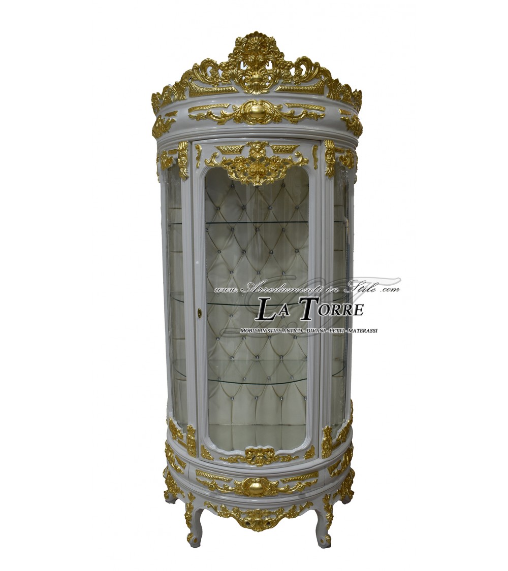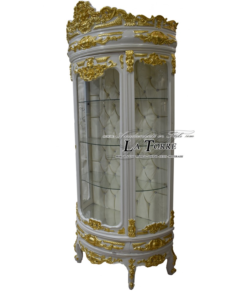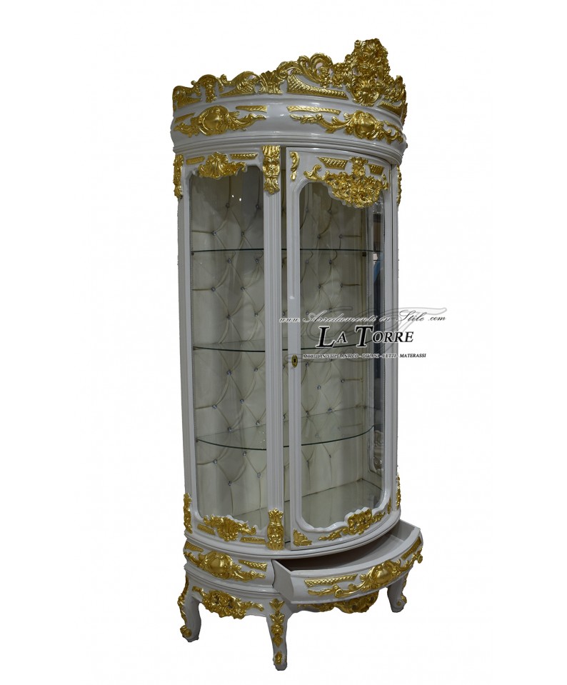 Vetrina bombata cristalliera Luigi XV stile barocco bianco e oro swarovski LT3049