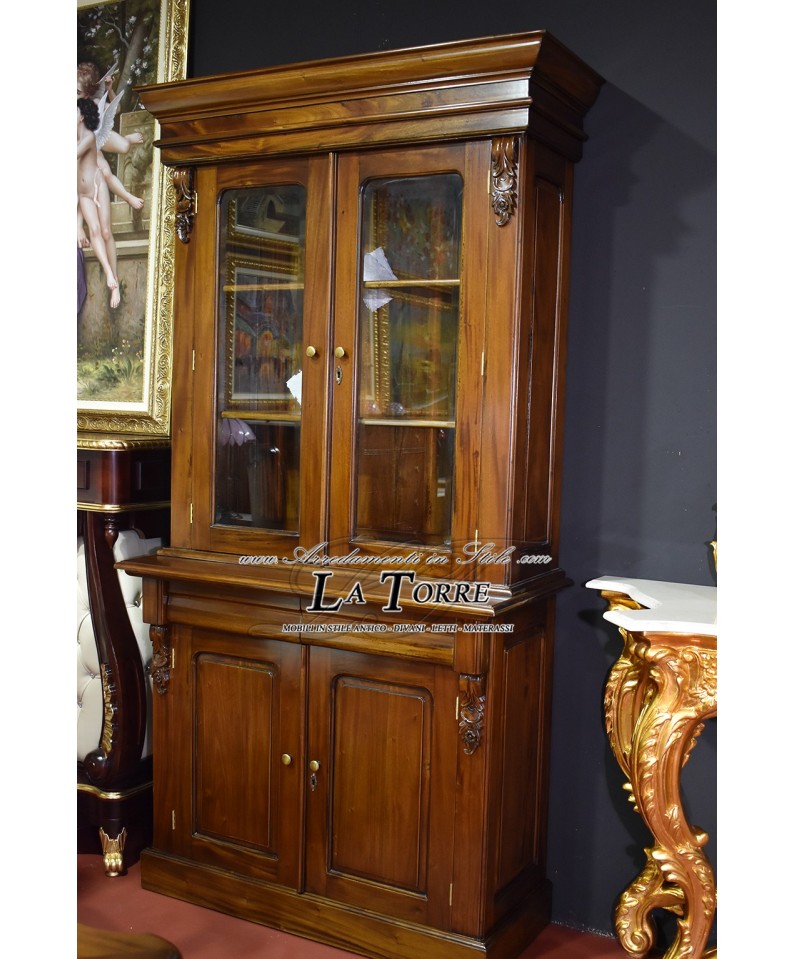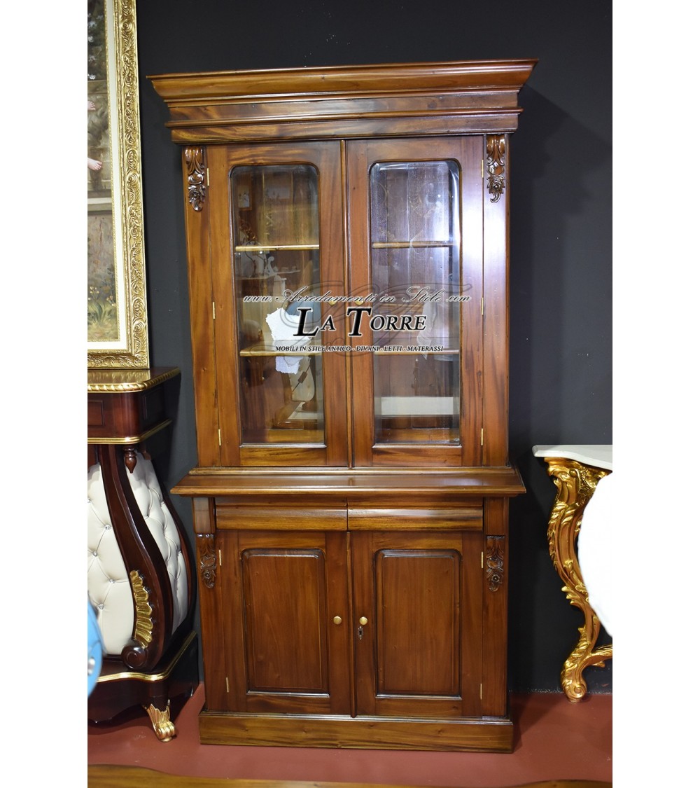 Libreria Annette Stile Vittoriano Inglese Vetrina cristalliera credenza Ministeriale Presidenziale Noce 4 Porte 2 Cassetti Na03