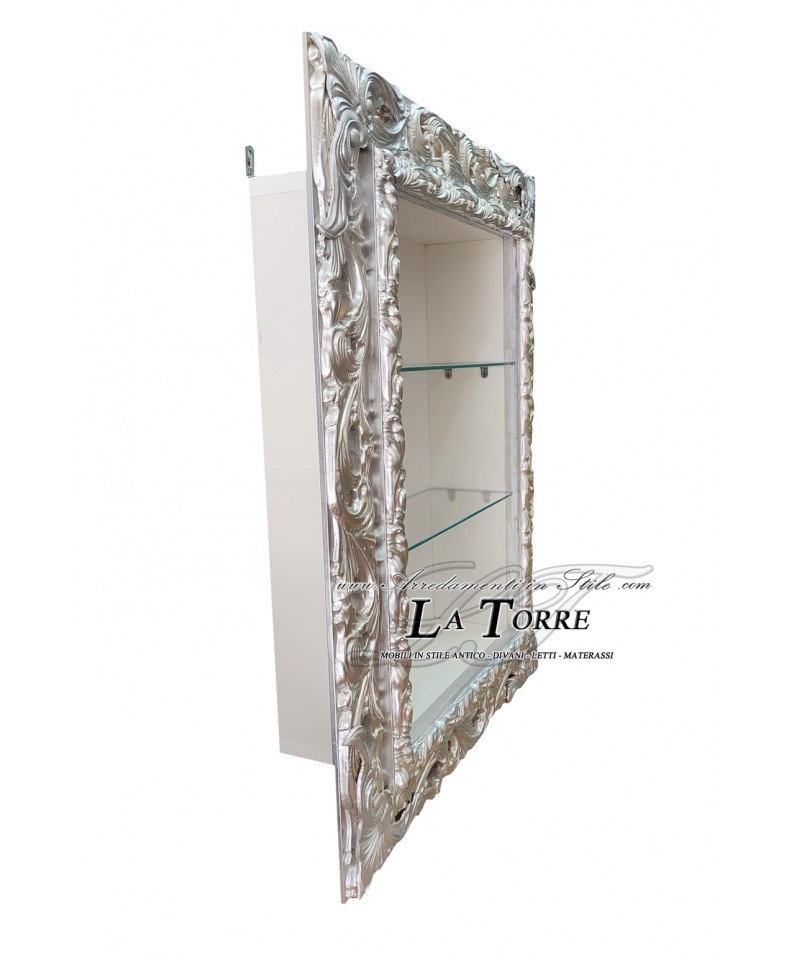 Vetrina sospesa da parete stile Barocco cornice traforata box Tv portabottiglie su misura VTGGA