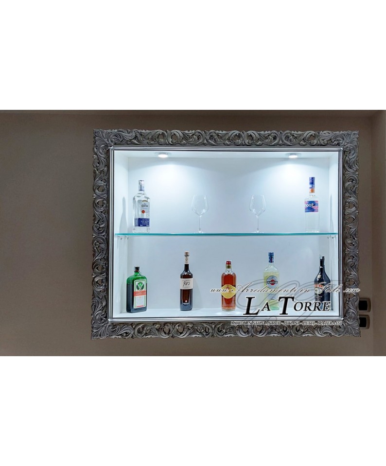 Vetrina sospesa da parete stile Barocco cornice traforata box Tv portabottiglie su misura VT1135A