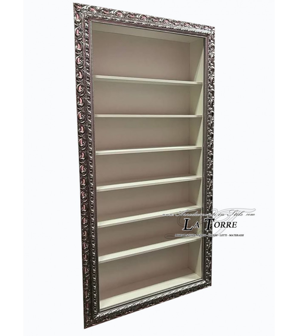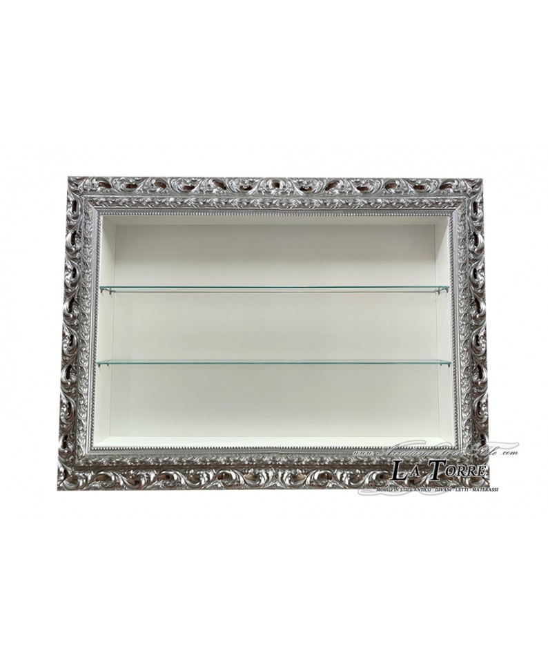 Vetrina classica sospesa da parete in stile Barocco cornice argento traforata box su misura VTGA