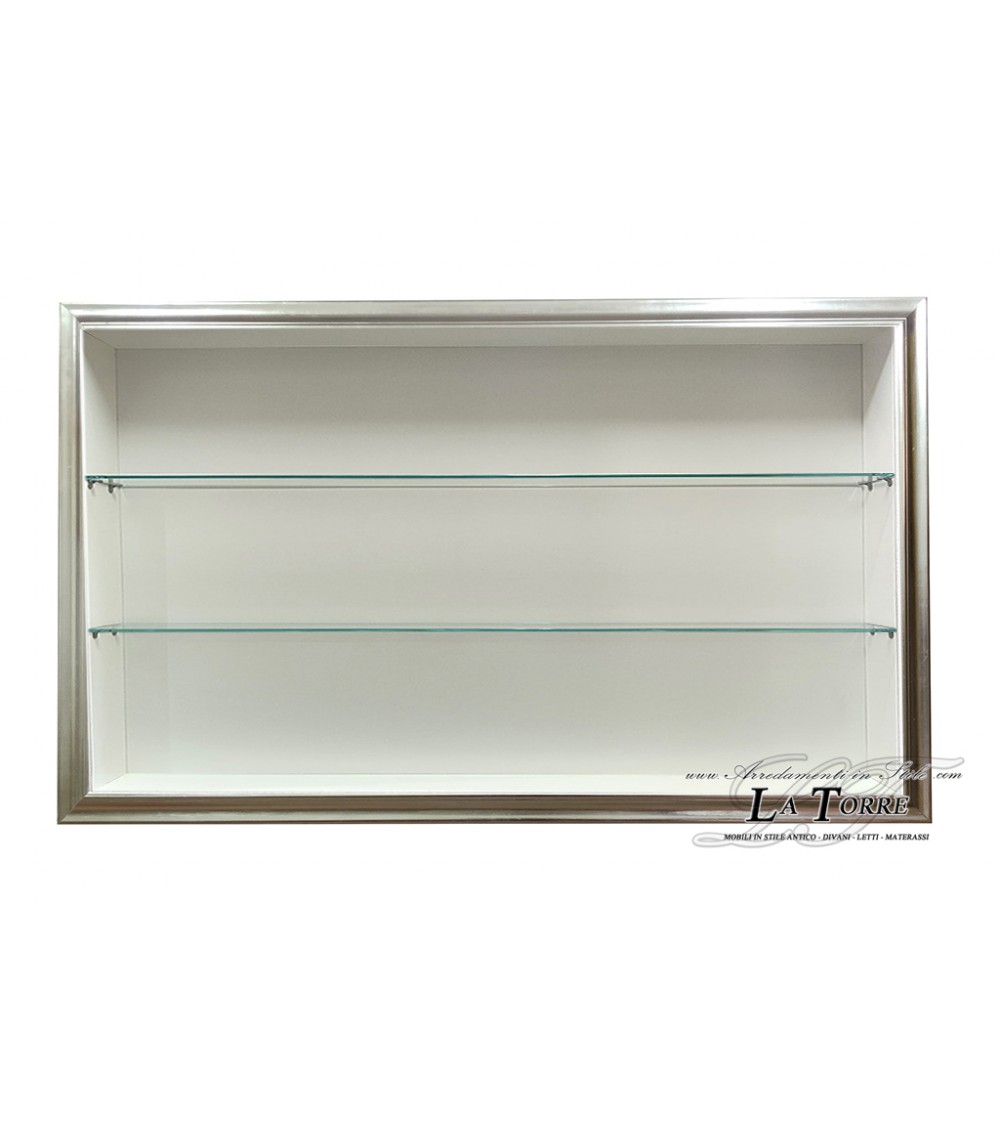Vetrina sospesa da parete bacheca stile classico cornice moderna argento box porta tv su misura VTRovescio/A