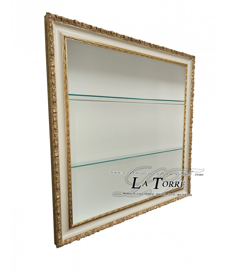 Vetrina Libreria Sospesa Stile Barocco - Cornice Classica Oro Avorio Su Misura VT1045OA